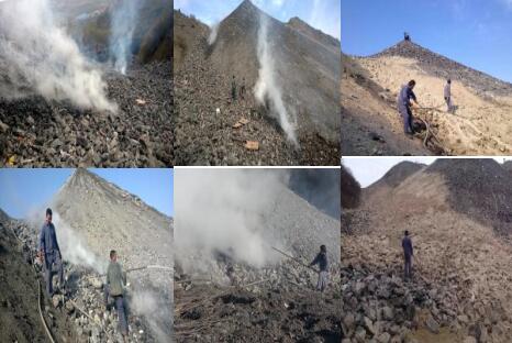 我公司團(tuán)隊(duì)已成功處理過多處矸石山自燃發(fā)火,如在平煤矸石山、西山局屯蘭礦后風(fēng)坪嶺風(fēng)井矸石山、鐵法煤業(yè)集團(tuán)大平煤礦矸石山、徐礦集團(tuán)北馬坊煤礦矸石山等。通過向空隙內(nèi)注入滅火和充填材料并使之固結(jié)在孔隙、裂隙中,改變了矸石山孔隙—裂隙結(jié)構(gòu)、邊界條件,阻礙風(fēng)流的傳送和滲透,從而防止煤矸石山自燃的發(fā)生并且防治復(fù)燃。